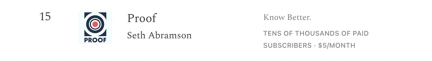 June 20, 2023: Proof gets a new logo (image from the Substack rankings in Politics):