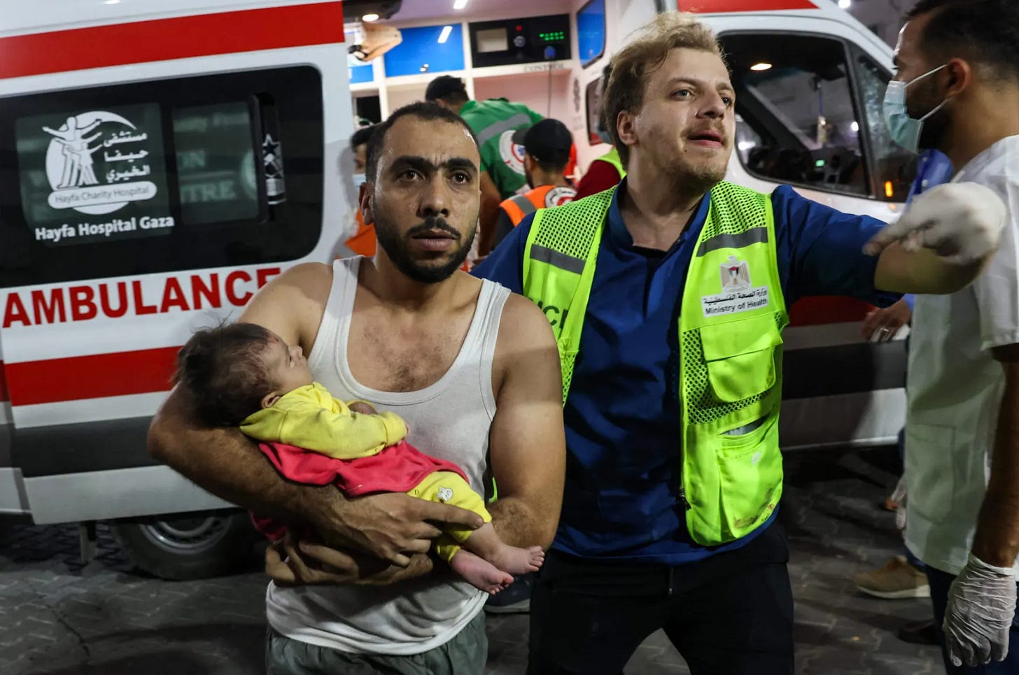 NPR reports that the effect of the now-raging war on Gazan hospitals has been “devastating”, with some hospitals reporting that certain patients must be treated on the floor—because there are no beds for them—and the “smell of blood everywhere.”