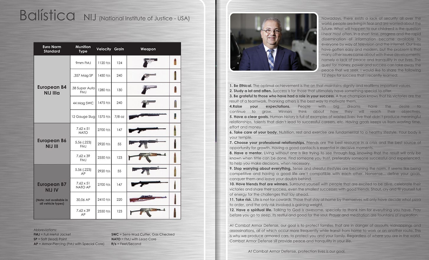 The website for Combat Armor Defense reveals that the company sells police vehicles, military vehicles, and other armored luxury and utility vehicles—including many of the sort used in large-scale crowd-control efforts. A picture from their brochure: