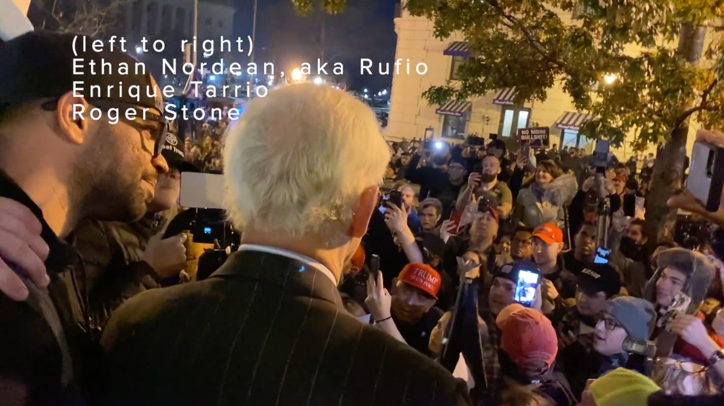 The video shows Stone at a December 11, 2020 event flanked by several Proud Boys who are acting, says one of them, as “security” for the Trump adviser. One of the Proud Boys is Ethan Nordean, according to Just Security. If accurate, this means that Stone had previously contracted with Nordean for security services—indeed, under four weeks before Insurrection Day—confirming that when Stone recorded a video in late December, just 19 days later (see link above) seeking donations to fund “protective equipment” for “security” personnel at the January 5 Stop the Steal/Rally to Save America and January 6 Stop the Steal/March to Save America events, the odds that he was referring to the militiamen we now know acted as his protective detail on January 5 and January 6 is extremely high. More importantly, it means federal law enforcement has arrested a known Stone associate for “asking on social media for help to buy protective gear”—which is exactly what Stone did just 19 days later. As Proof noted on February 4, the ongoing Proud Boy conspiracy cases have unindicted co-conspirators.