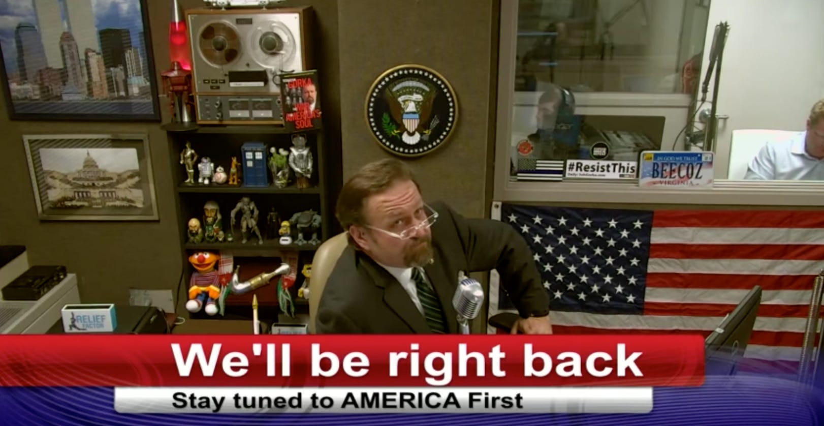 Over the next three minutes, Gorka glances up at the camera every time he speaks—his microphone still off—and when he returns to air, one of the first things he notes is that the coming days will be “crazy”. He then starts pitching his next guest, Trump adviser Peter Navarro, another Rally to Revival speaker—indeed the most nervous one of the whole event, as Navarro begins his address seemingly most concerned about telling the audience he isn’t present as an agent of the Trump administration. As Proof has previously detailed, Navarro spent part of Insurrection Eve in the Trump “war house” at Trump International Hotel, a fact that he subsequently lied about to the AP.
