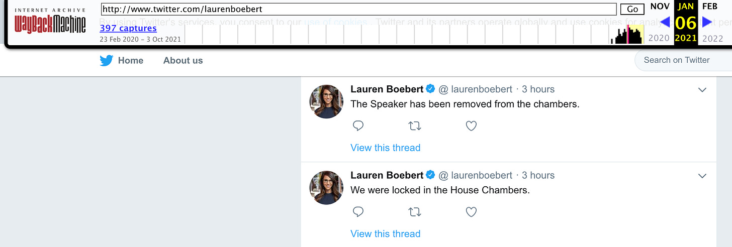 The House GOP reportedly held a two-hour caucus meeting on January 5. However, that event broke up so early in the day that the one outlet that reported on it was able to provide an “updated” version of its report by 4:48PM ET—and the report makes clear that it was originally filed well after the conclusion of the GOP caucus meeting. And this video shows Boebert inside the Capitol rotunda just before the GOP caucus meeting would have begun. So whatever Lauren Boebert was doing between 4PM ET and 9PM ET on Insurrection Eve, it does not appear to have involved meeting with her Republican House colleagues en masse (though, as noted above, a smaller working group—including one that included the President of the United States as well as representatives Gosar and Gooden—is a distinct possibility). Based on the available evidence, this possibility is one that investigators must investigate urgently and fully.