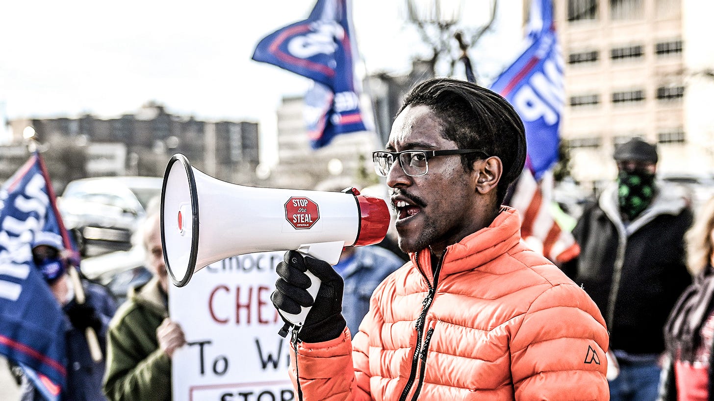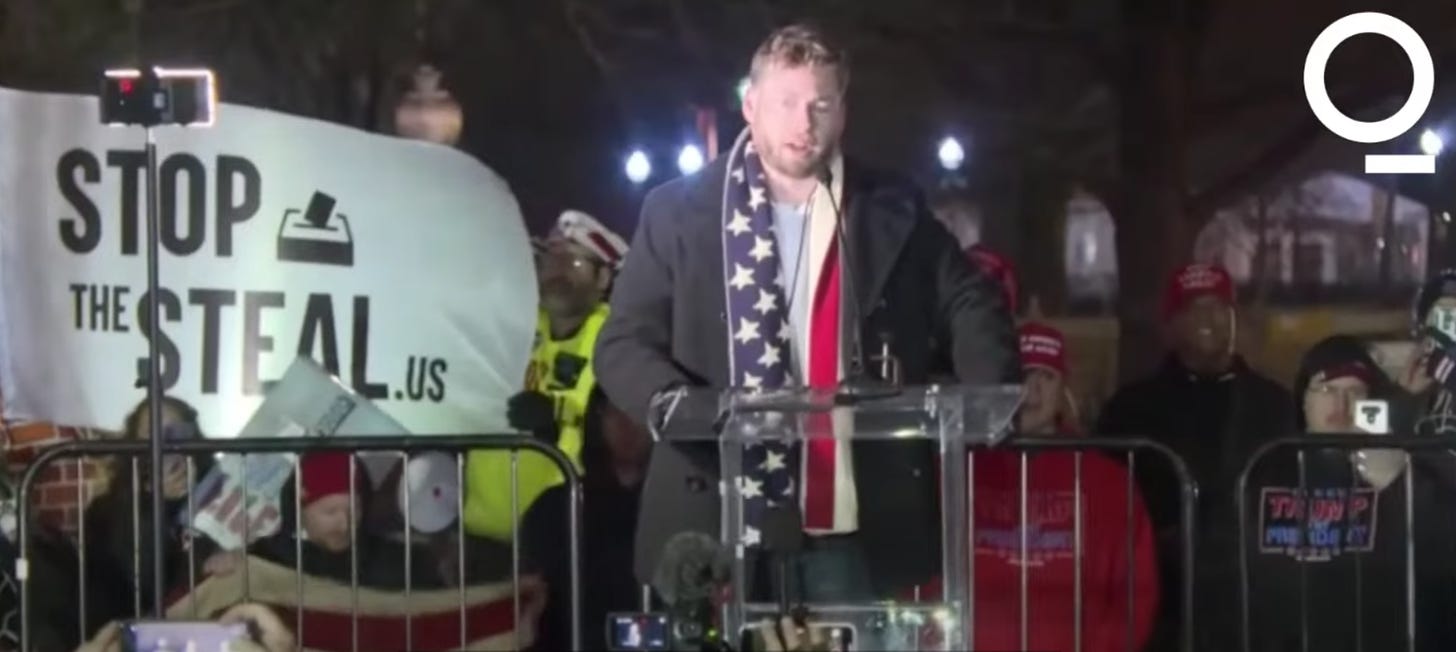Ali Alexander must be found and arrested. It is now clear that he not only incited the events of January 6—despite later insisting, of the events at the Capitol, in a video taken by Michael Coudrey, “I don’t disavow this, I do not denounce this”—but also that he was in direct contact with members of both houses of Congress and the Trump campaign (which he says he was texting with from the Capitol) on both Insurrection Eve and Insurrection Day.