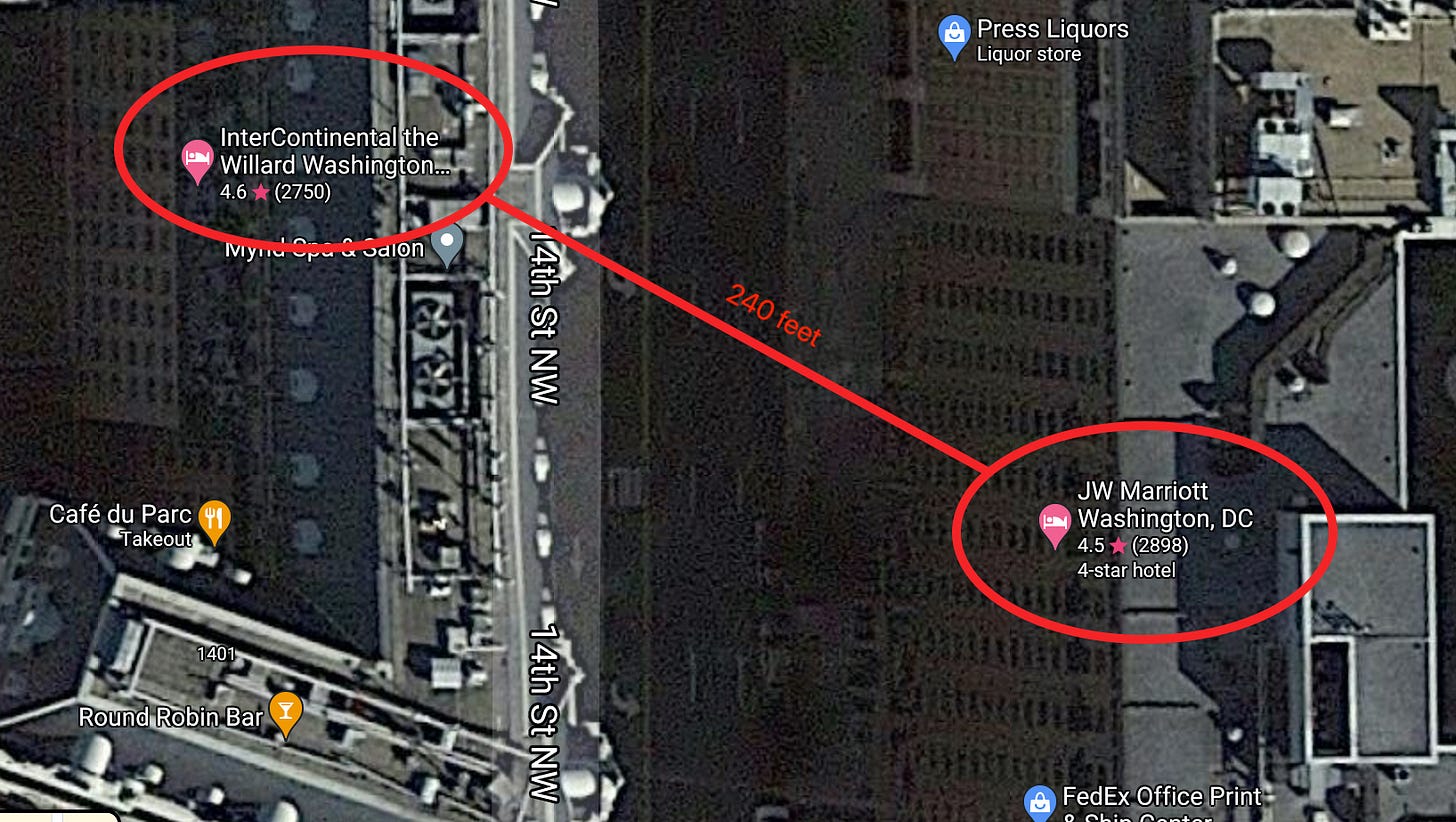 But it’s not merely the connections above that link the Willard and the JW Marriott, but something even more significant to the ongoing FBI probe of the January 6 attack.