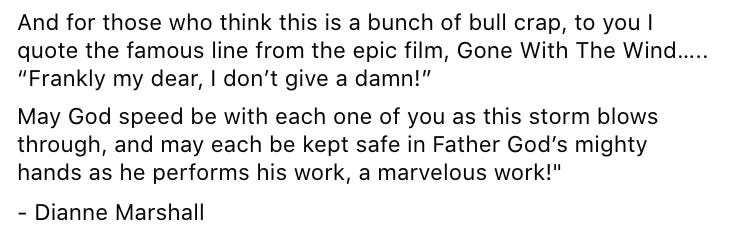 {Note: you can find this Facebook post here, or below, but please understand that it’s deranged, risible bile from a very sick person in the United States. Much of it is also incomprehensible.}
