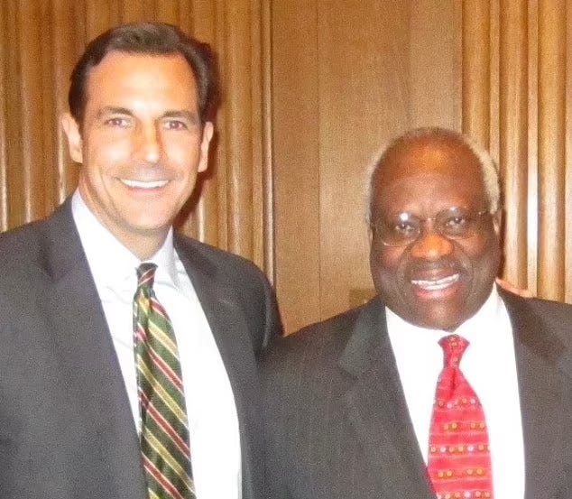 If Klukowski’s plot—which would have involved not only fake electors but lawsuits brought by state legislators in an effort to get them before Clarence Thomas and the Supreme Court—sounds familiar, it’s because it dovetails precisely with what former Clarence Thomas law clerk John Yoo had written in late October of 2020 and what former Clarence Thomas law clerk John Eastman would thereafter adopt as his legal advice to Donald Trump and what Clarence Thomas spouse Ginni Thomas would in late 2020 begin secretly advocating in emails to battleground-state GOP lawmakers.