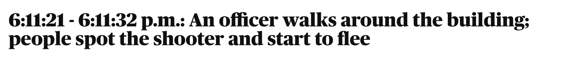 What Trump may be trying to weave into his story in a dishonest way are the actions of those not inside the rally who did try to get police to apprehend the shooter ex ante. But Trump never saw those people, never spoke to those people, and did not admit them to his rally, and their story doesn’t center him and camera shots he appears in, so he’s transplanted their heroism to inside the rally and different “in-frame” people.
