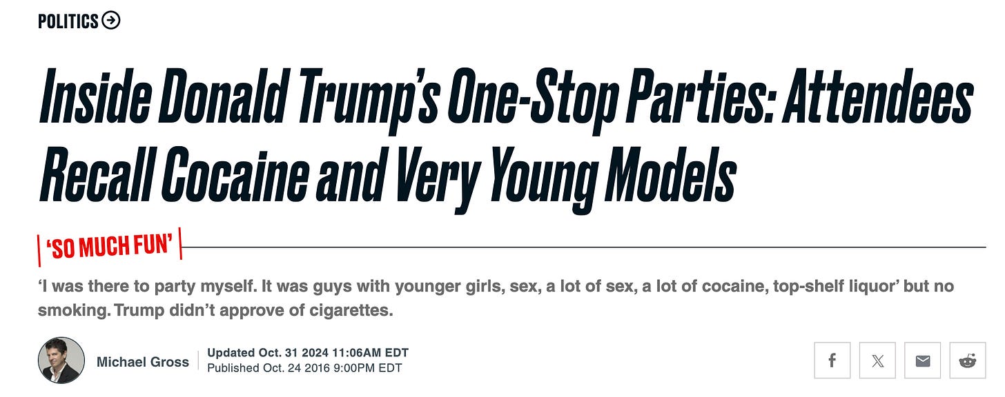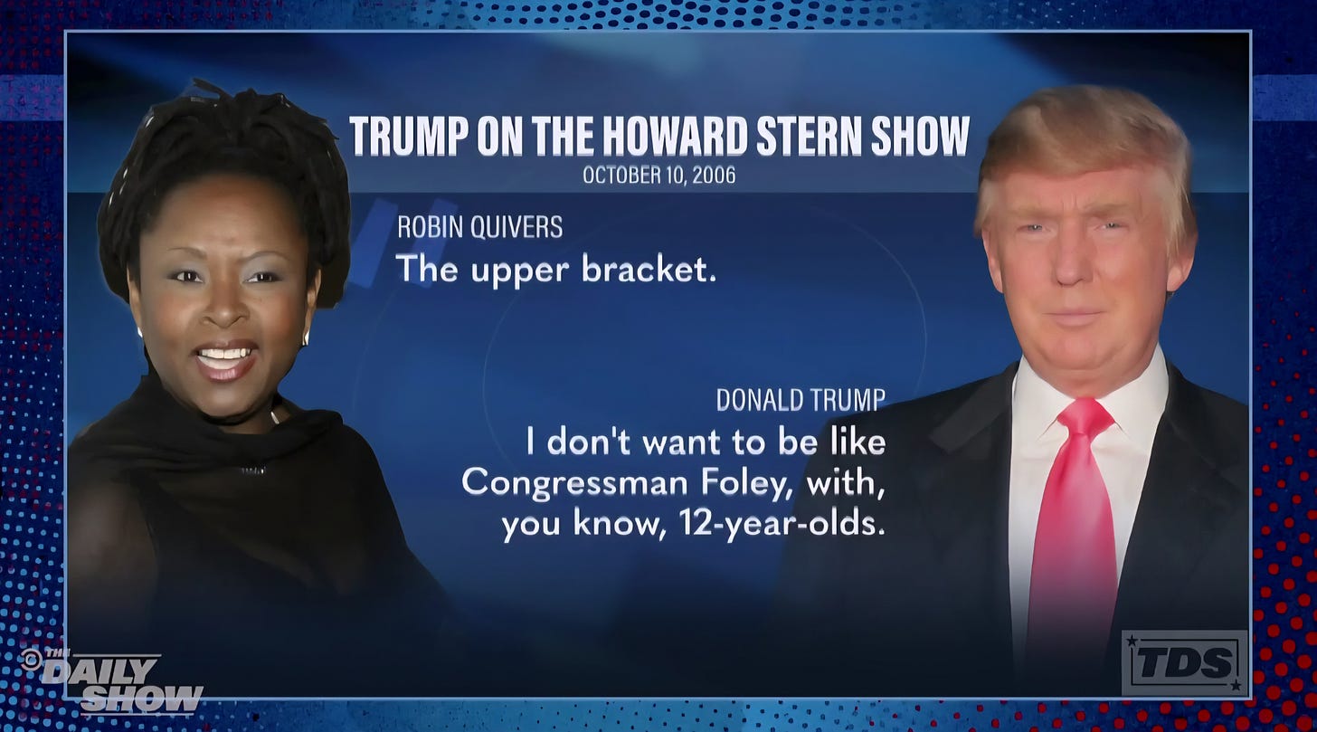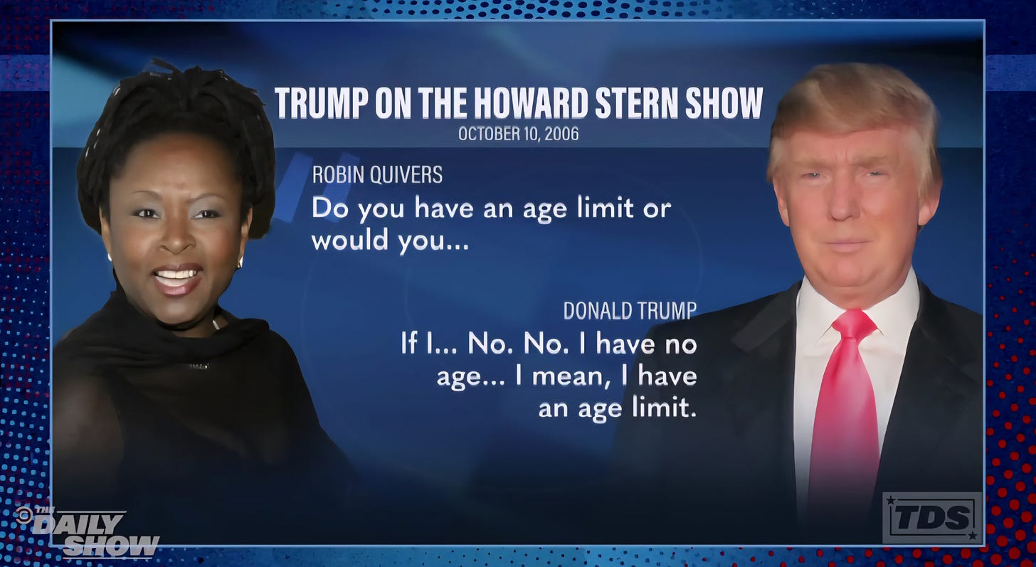 Trump at least knows what he’s avoiding here: a growing public concern that he may have regularly slept with teenagers as a grown man, and perhaps even underage girls.