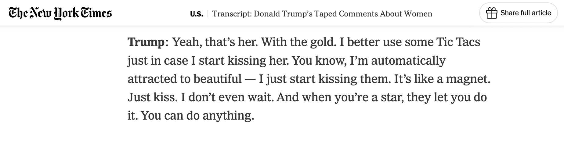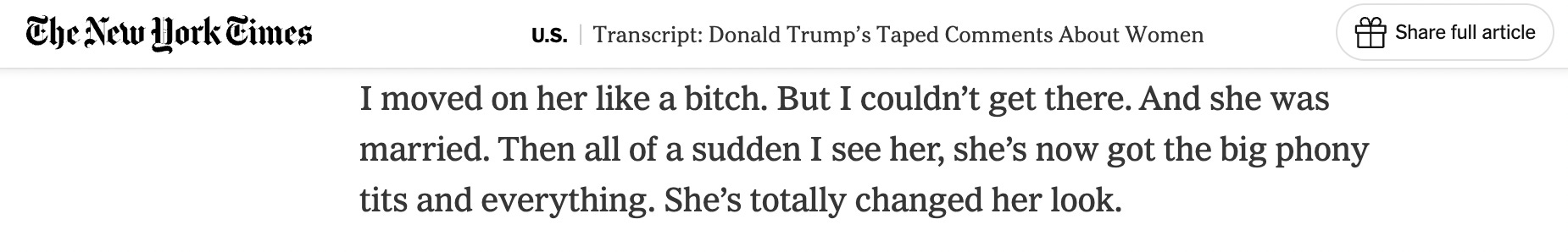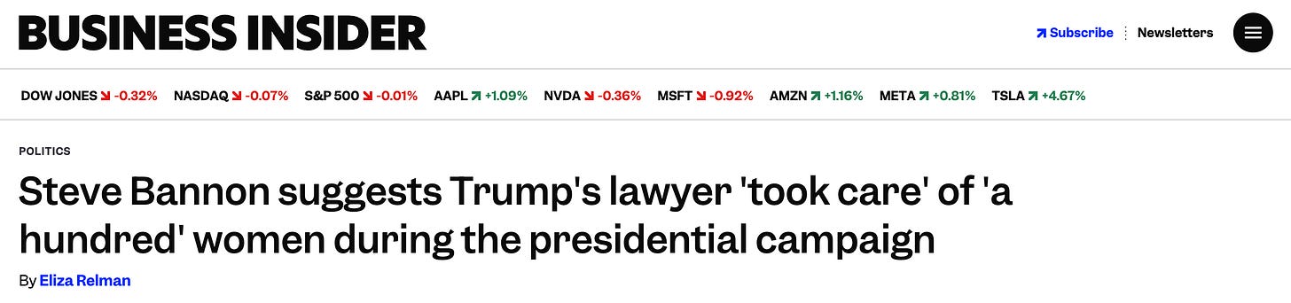This also explains the most infamous statement Epstein’s 2015-to-2017 best friend, Bannon, ever made about Trump and women—and specifically what was going on behind the scenes (ironically, with the involvement of the aforementioned Michael Cohen) from 2015 to 2017, as Trump’s 2016 political campaign took off meteorically: