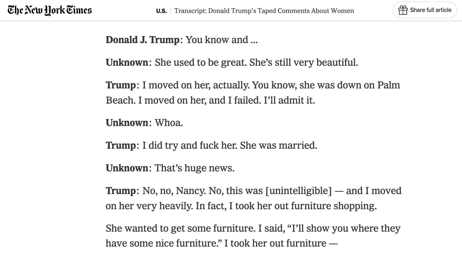 None of what Bannon and Epstein talked about or what Bannon said to Epstein after the 2016 election makes any sense if what that 2003 Note was referring to were “mere” adulteries, or if what Bannon was afraid Epstein would do to destroy Trump’s 2016 campaign involved “mere” tales of extramarital sex of the sort Trump proudly boasted of under his own steam.