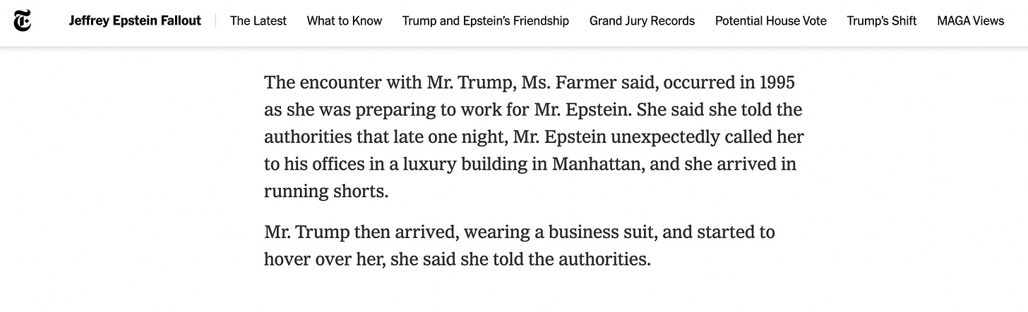 And as we’ll see in this report, the partying Trump and Epstein did during this period was consistently, unmistakably, and harrowingly problematic as a matter of U.S. law.