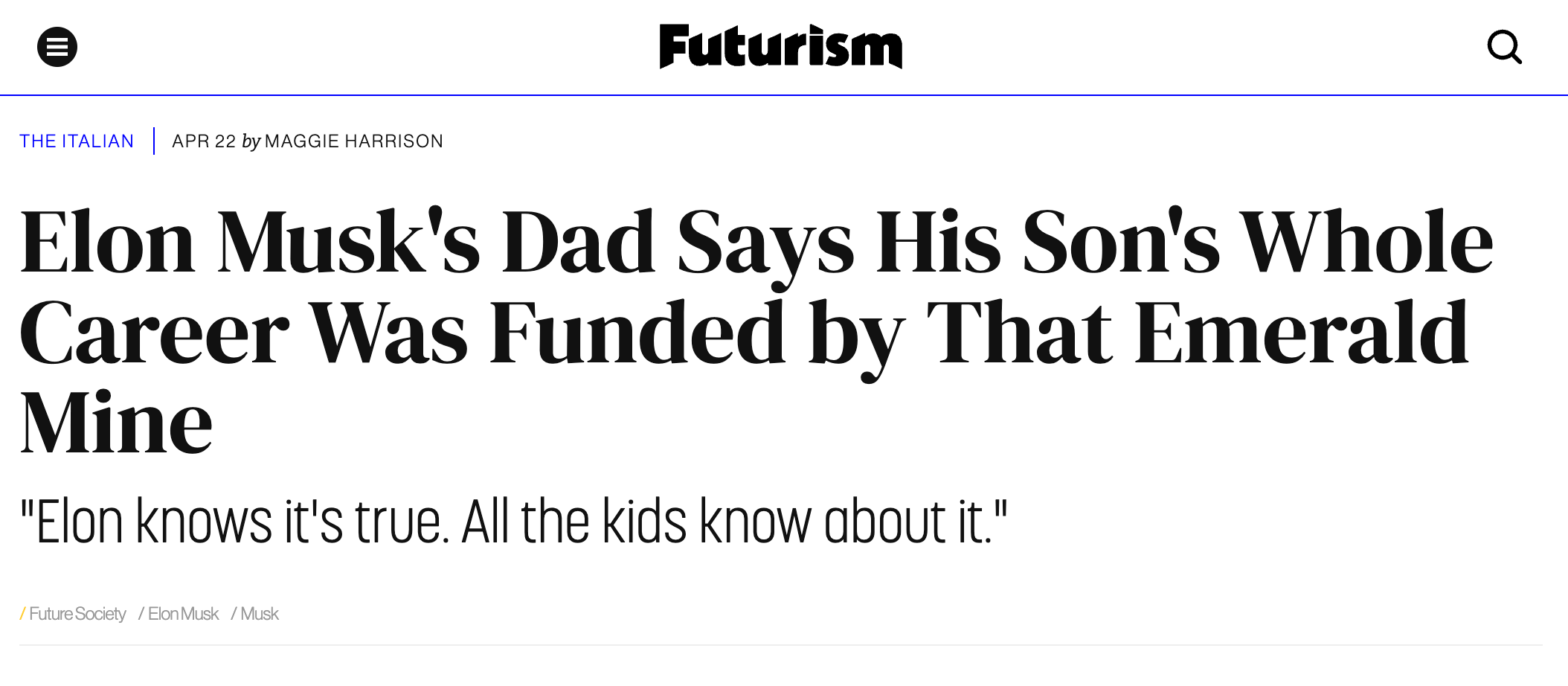 In addition to systematically lying in spectacular fashion about an apartheid-era South African emerald mine having made possible his immigration to the United States with plenty of money to support himself, Mr. Musk has given Americans of conscience ample reason to fear that his views on race, ethnicity, sexual orientation, gender identity, and immigration status are every bit as far to the right as those of Donald Trump—though whereas Trump’s rhetoric is “merely” opportunistic and disingenuous, Musk’s appears more terrifying by virtue of apparently being sincere.