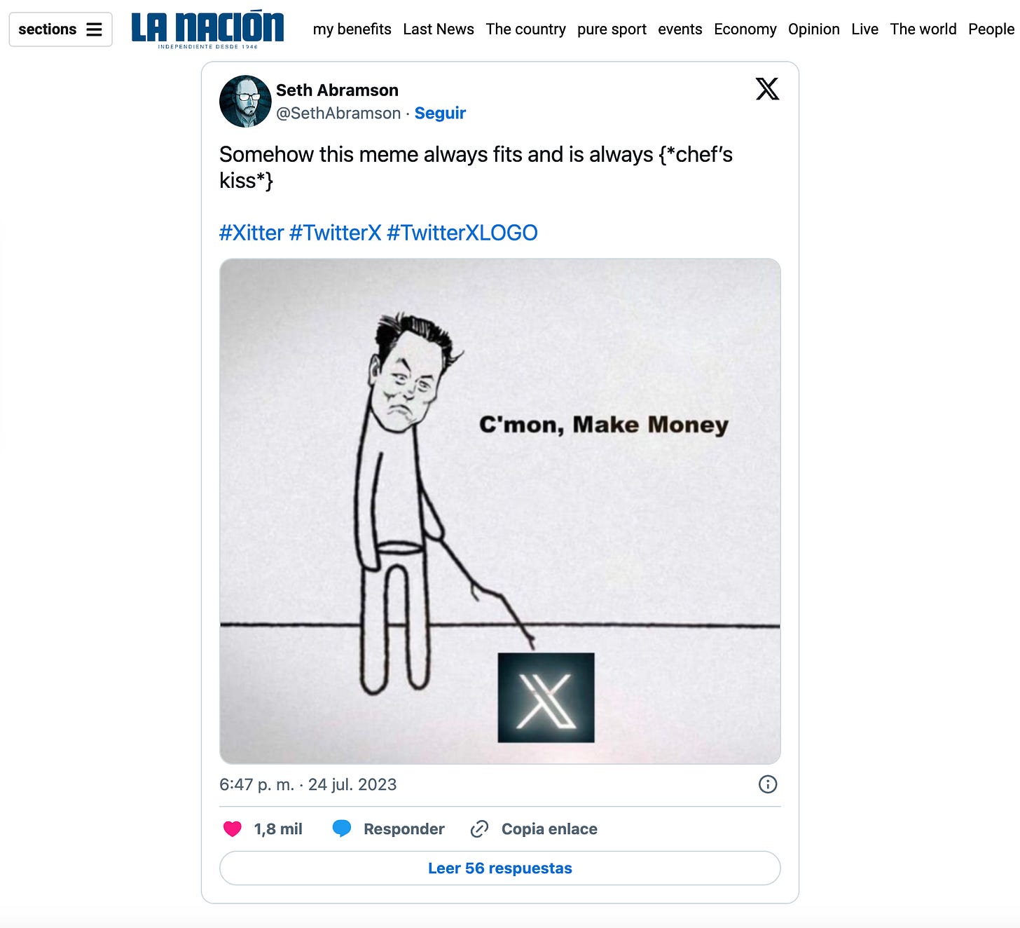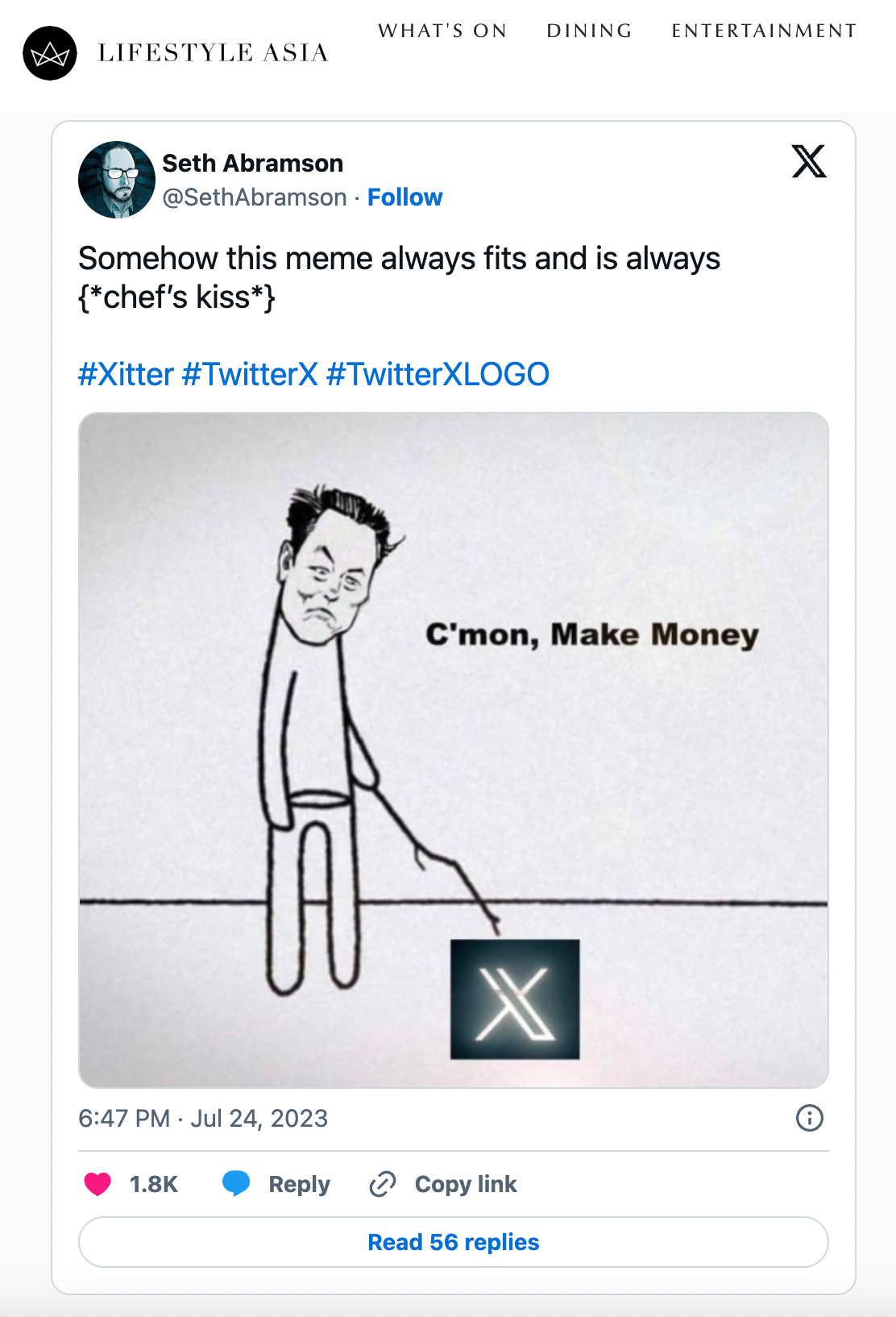 “One of the best tweets might be the user [Seth Abramson] who made a good point about how the pronunciation of ‘X’ in the case of Twitter [means the platform] will now be called, um, ‘Xitter’.”