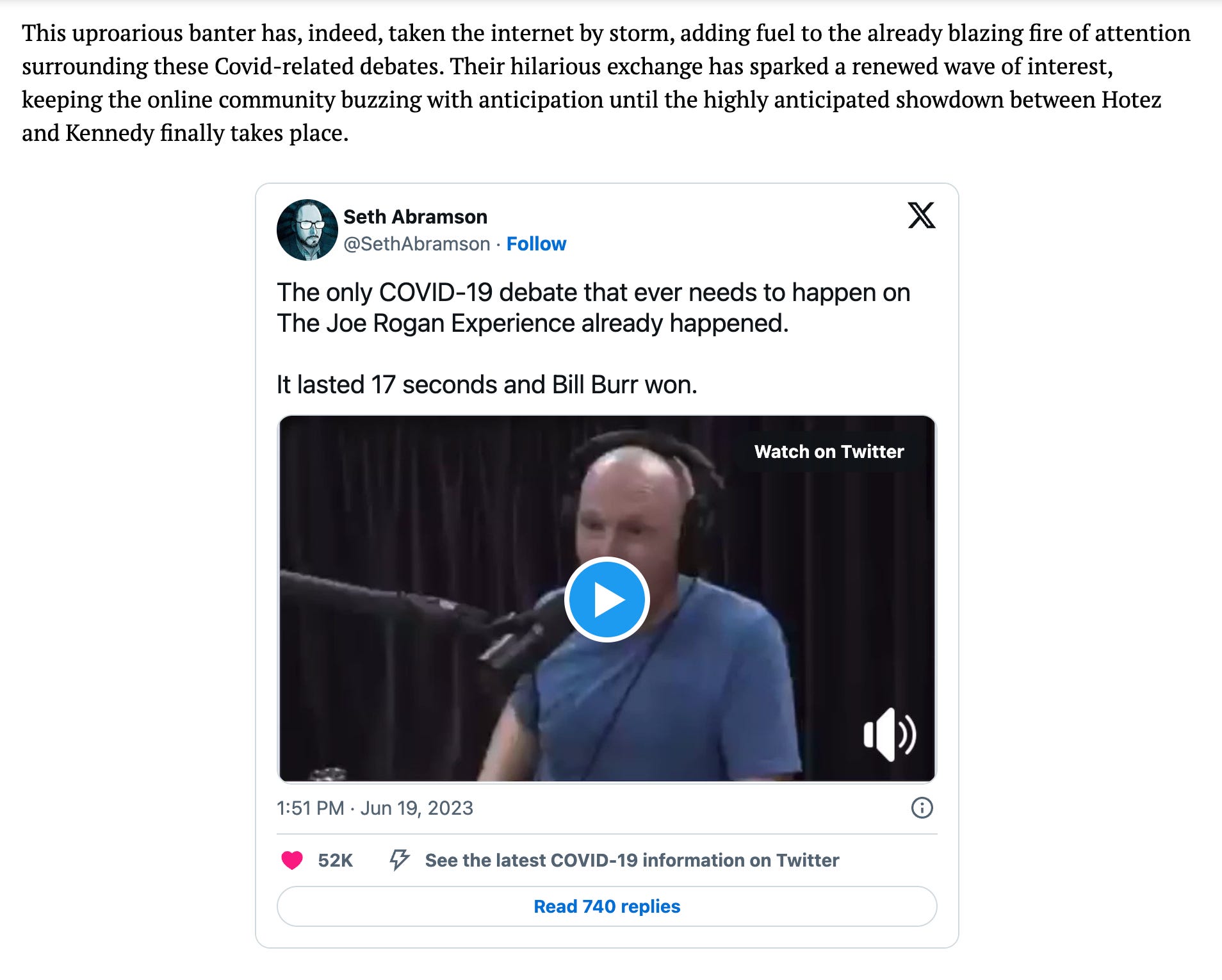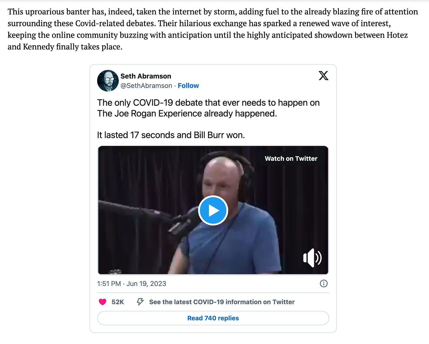 Title: “Bill Burr Shutting Joe Rogan Down With Simple Covid-19 Logic Has Gone Viral Again, Here’s Why” (link)