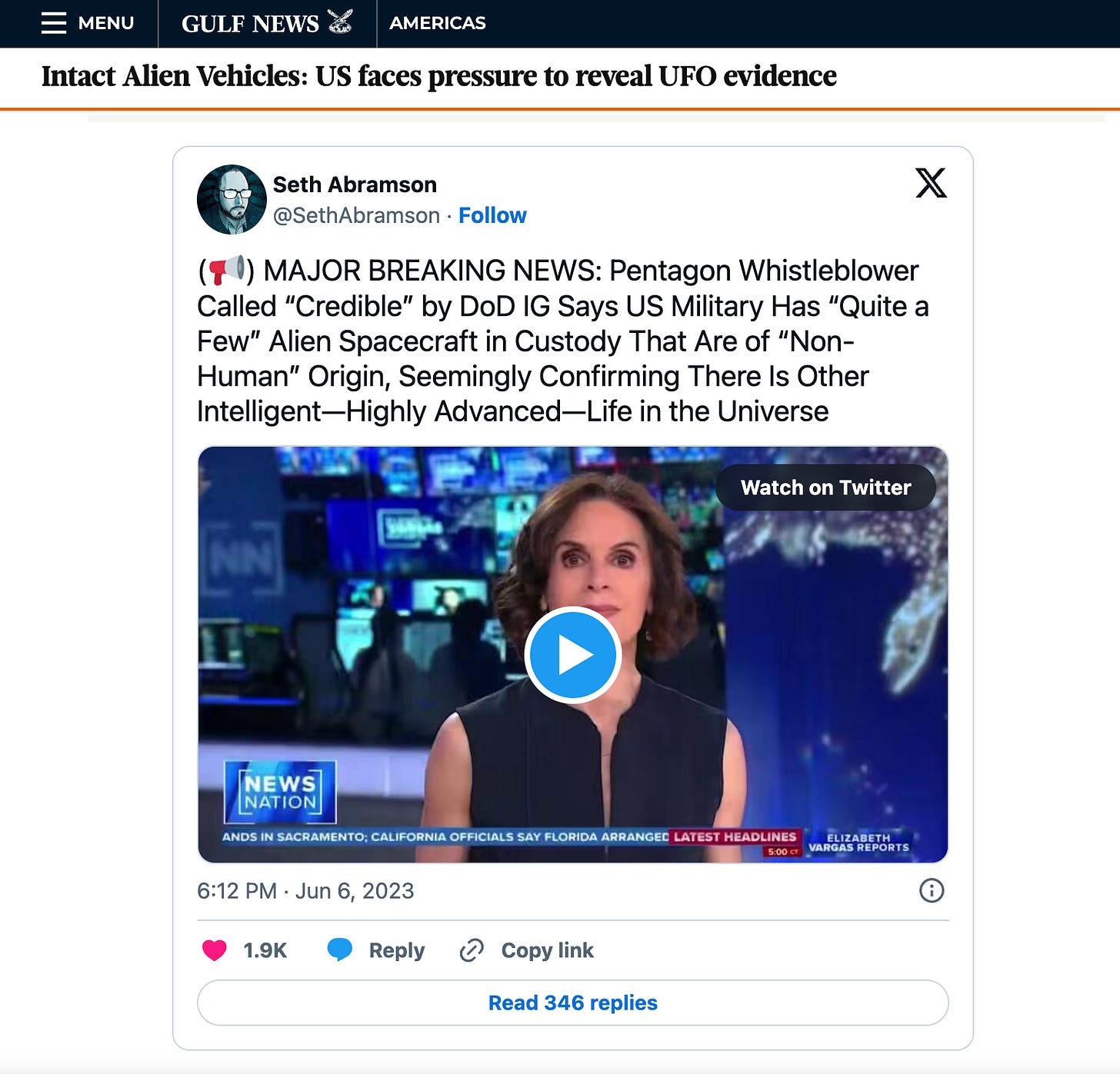 Title: “Intact Alien Vehicles: United States Faces Pressure to Reveal UFO Evidence” (link)