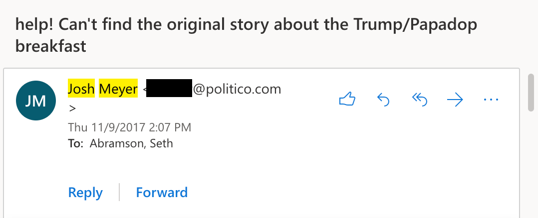 This was pretty heady stuff for a Politico admirer. The top investigator at the media outlet called himself a “big fan” and said I do “great investigative work”? That was exciting. On the call, Meyer started the conversation with words that so etched themselves in my memory that after Politico denied knowing me for the first time, in 2018, I typed them from memory into a tweet: “You’re one hell of an investigative journalist.”